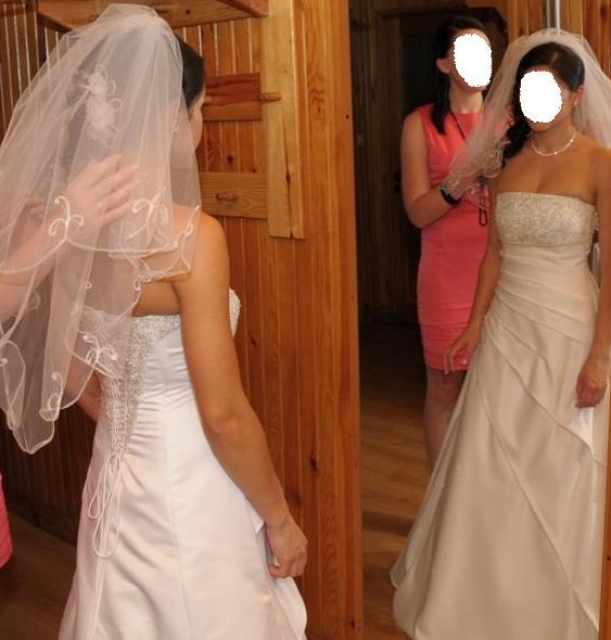 Sprzedam suknię jednoczęściową, rozmiar 36-38, z tyłu sznurowana, a więc można ją dopasować do różnych sylwetek. Suknia zdobiona jest bardzo gustownie ręcznie przyszywanymi koralikami, które pięknie się mienią w słońcu. Koraliki wyszyte są na biuście, z tyłu wokół sznurowań tworzą trójkąt oraz delikatnie na całej sukni. Do sukni są przyszyte cieniutkie szelki pokryte koralikami takimi samymi jak zdobiona jest suknia, które można łatwo schować gdyby nie były potrzebne. Na życzenie wyślę więcej zdjęć na maila. Suknię sprzedam za 700 zl. Zachęcam do przymierzenia