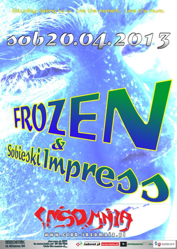 FROZEN & SOBIESKI IMPRESS. Zmrażająca impreza polegająca na wystrzeleniu pod dużym ciśnieniem dymu o temperaturze -70 stopni, co powoduje zasłonę dymna i nagłe ochłodzenie rozbawionych imprezowiczów. Ponadto dla pierwszych 200 wchodzących Drink Sobieski Impresive gratis.