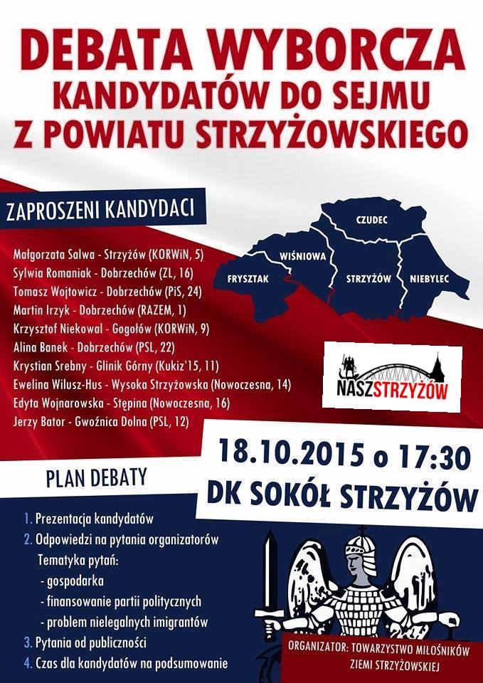 Towarzystwo Miłośników Ziemi Strzyżowskiej oraz portal Nasz Strzyżów zapraszają wszystkie osoby z powiatu strzyżowskiego, na debatę wyborczą kandydatów do sejmu RP z naszego powiatu.