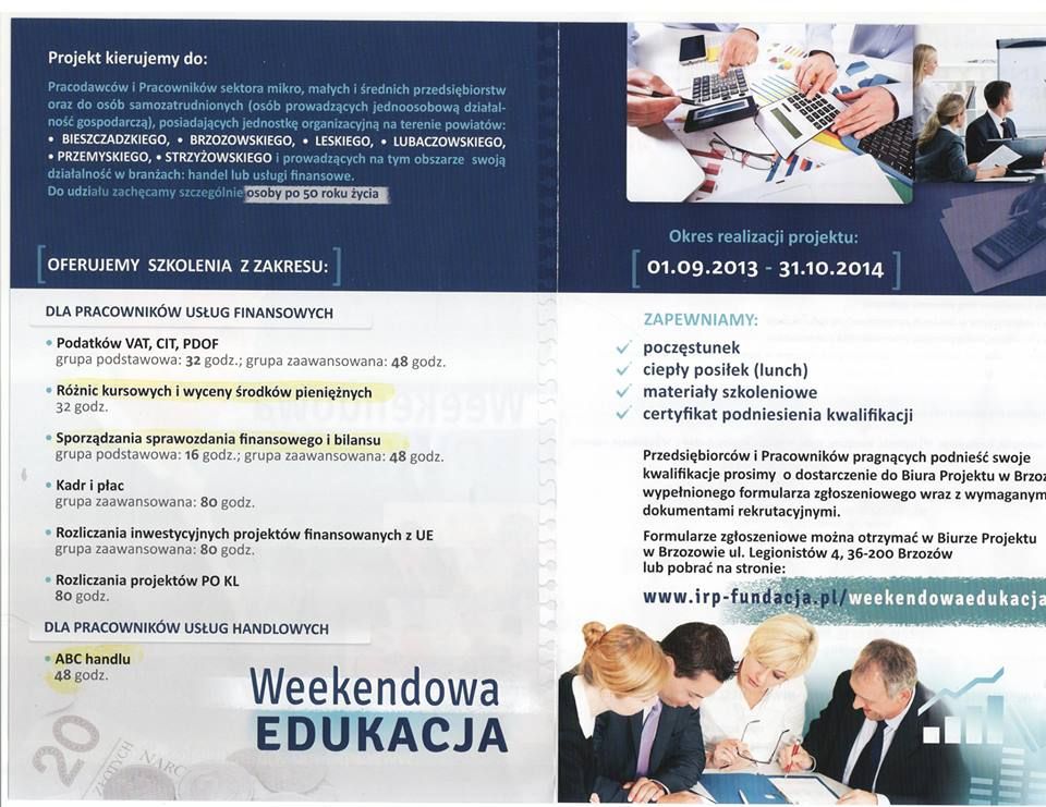 Trwa rekrutacja do projektu "Weekendowa Edukacja" realizowanego przez Instytut Rynku Pracy Fundacja Nowy Staw.