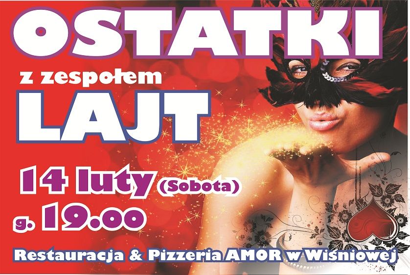 OSTATKI Z ZESPOŁEM LAJT 14 LUTY (SOBOTA) G. 19.OO RESTAURACJA & PIZZERIA AMOR W WIŚNIOWEJ ZAPRASZAMY