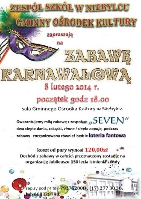 Dochód z zabawy zostanie przeznaczony na organizację jubileuszu 150 lecia szkoły
