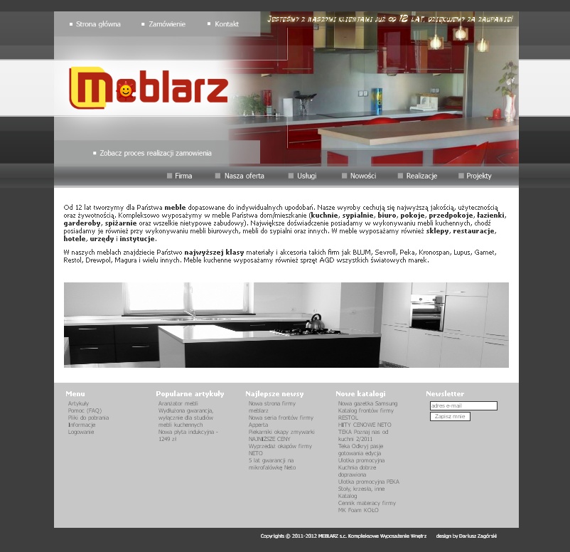 Od 15 lat tworzymy dla Państwa meble kuchenne dopasowane do indywidualnych upodobań. Nasze wyroby cechują się najwyższą jakością, użytecznością oraz żywotnością. W naszych meblach znajdziecie Państwo najwyższej klasy materiały i akcesoria takich firm jak Blum, Sevrol, Kronospan, Gamet, Restol, Magura i wielu innych oraz sprzęt AGD wszystkich wiodących marek.