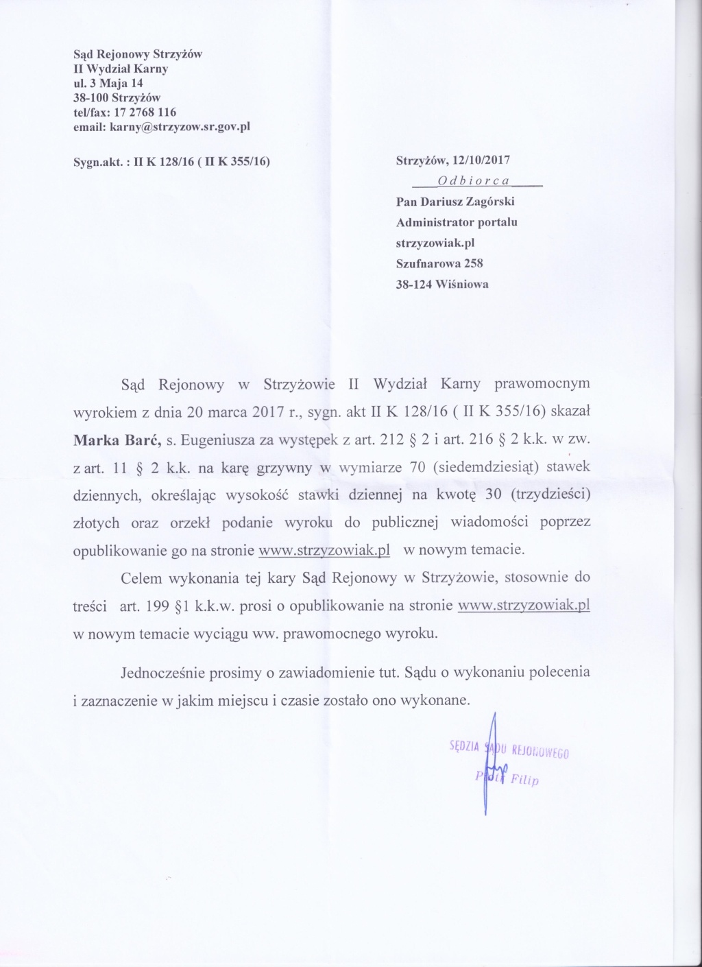 Sąd Rejonowy w Strzyzowie zawiadamia!