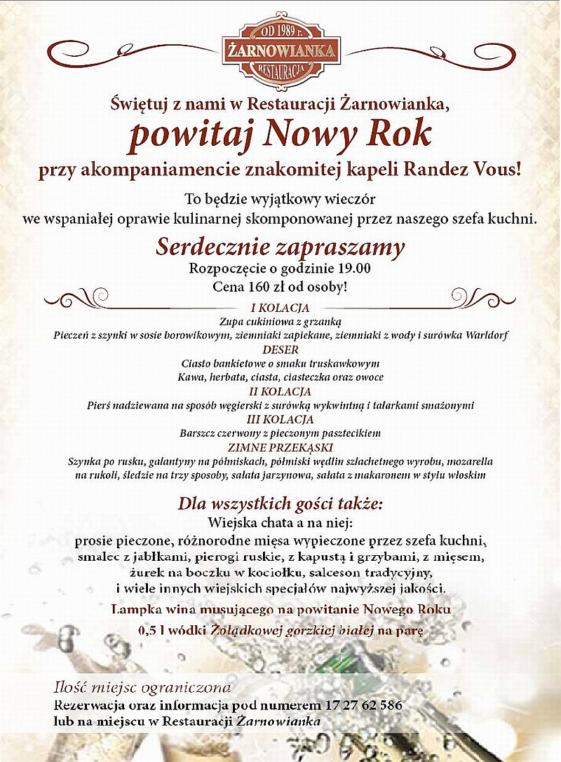 Ipreza sylwestrowa w Restauracji Zarnowianka