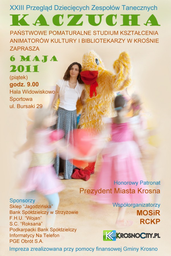 Dnia 6 maja o godz. 9.00 w Hali Widowiskowo - Sportowej w Krośnie odbędzie się XXIII Przegląd Dziecięcych Zespołów Tanecznych „Kaczucha 2011”, której organizatorem jest Państwowe Pomaturalne Studium Kształcenia Animatorów Kultury i Bibliotekarzy w Krośnie.