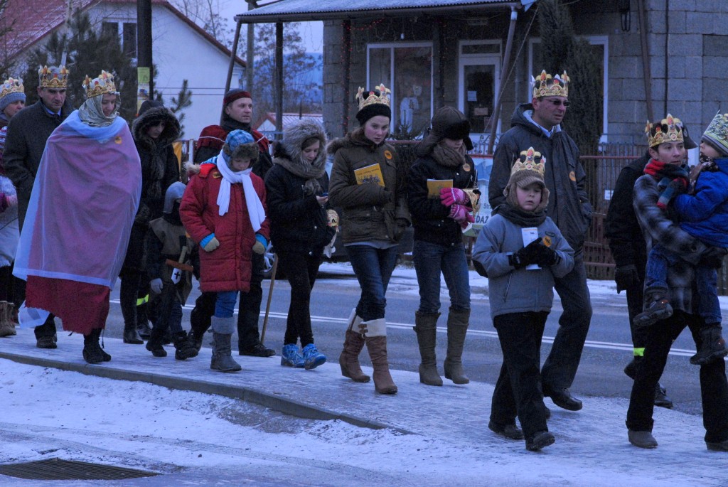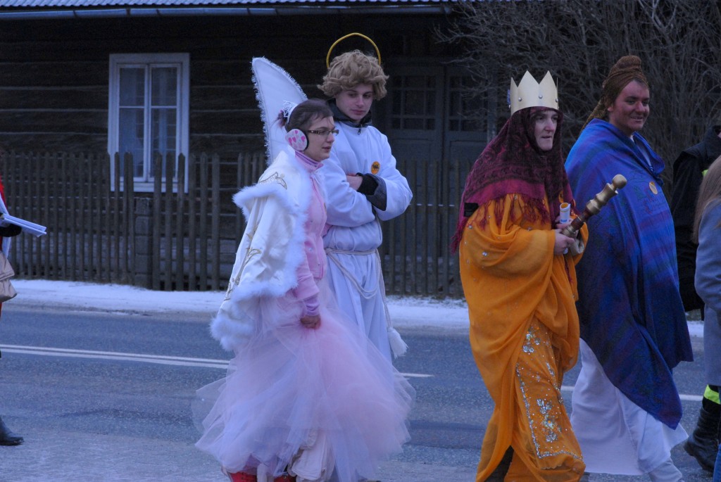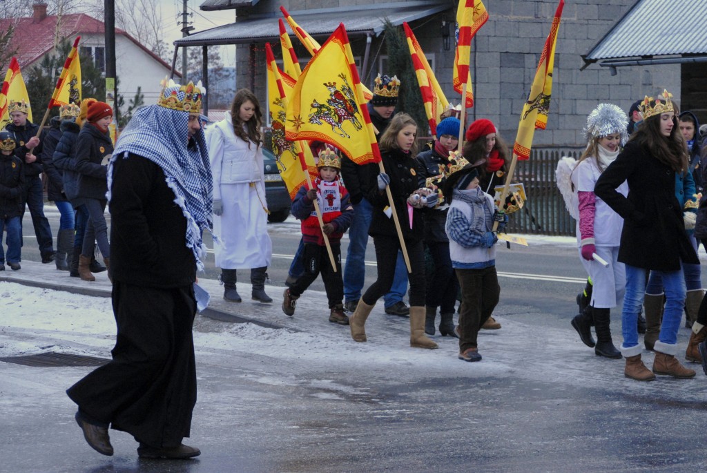 oferują. Pod Urzędem Gminy odczytany został fragment Pisma Świętego - był to kolejny punkt orszaku zatytułowany "Wizyta Trzech Króli u Heroda". Następnie odbyła się walka Aniołów i Diabłów. Pokłon w Stajence i Msza Święta była ostatnim punktem orszaku.