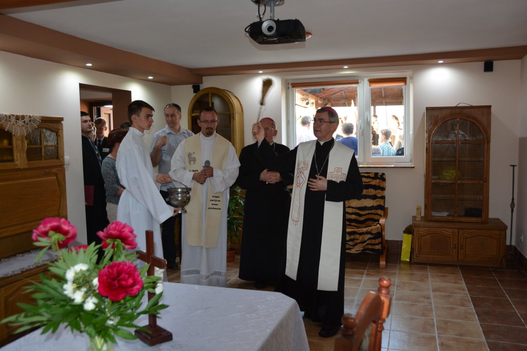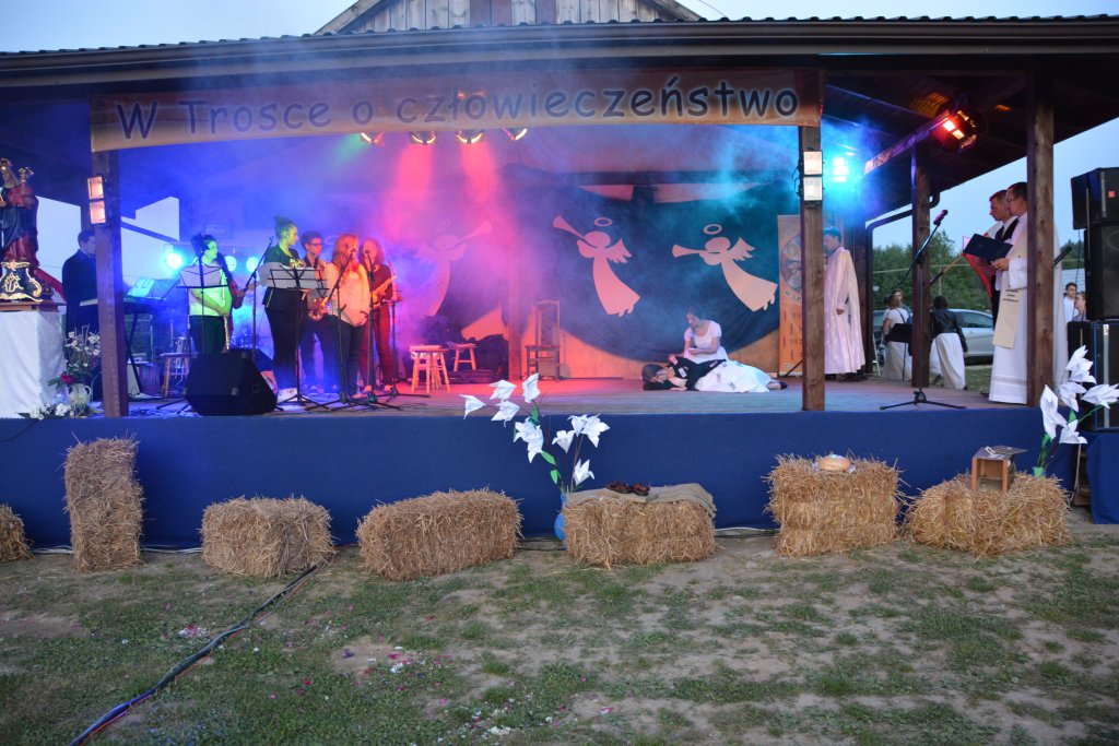 Uroczystość pod nazwą „Festiwal w trosce o człowieczeństwo” odbyła się na nowo wybudowanej scenie, na której grał zespół muzyczny Pray z Dobrzechowa pod dyrekcją ks. Grzegorza Kidy. Po wniesieniu figury odśpiewano litanię loretańską. Następnie ks. Piotr Gnat, założyciel Fundacji i pomysłodawca festiwalu, wygłosił katechezę. Po niej Ksiądz Biskup Ordynariusz Jan Wątroba poświęcił dom rekolekcyjny, który stanowi dar ks. Biskupa Jana Niemca. W organizację imprezy zaangażowały się Panie z Koła Gospodyń Wiejskich przygotowując kanapki. Podczas festiwalu ewangelizacyjnego wypraszano 7 darów obecnych w Niepokalanej. Każdy dar był obrazowany konkretnym symbolem (np. wolność –gołębie). Gimnazjaliści z Frysztaka pod kierownictwem Pani Joanny Menduś odgrywali scenki tematyczne i wykonywali tańce uwielbienia. Na zakończenie uroczystości ks. Biskup Jan Niemiec udzielił wszystkim pasterskiego błogosławieństwa. Patronat honorowy nad wydarzeniem objął Przewodniczący Sejmiku Województwa Podkarpackiego Pan Wojciech Buczak. W imieniu organizatorów dziękujemy wszystkim za pomoc w przygotowaniu otwarcia domu i darczyńcom za wspieranie naszego dzieła. Przebieg wydarzenia można na nowo prześledzić przeglądając fotogalerię na naszej stronie internetowej. www.fundacjatroska.pl