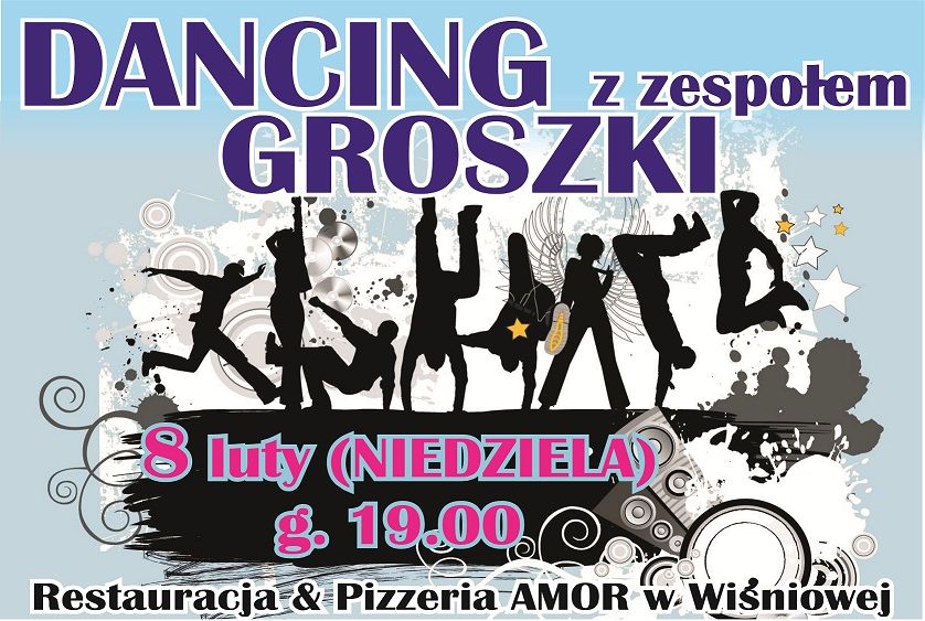 DANCING Z ZESPOŁEM GROSZKI 8 luty (NIEDZIELA) godz. 19.oo RESTAURACJA & PIZZERIA AMOR W WIŚNIOWEJ