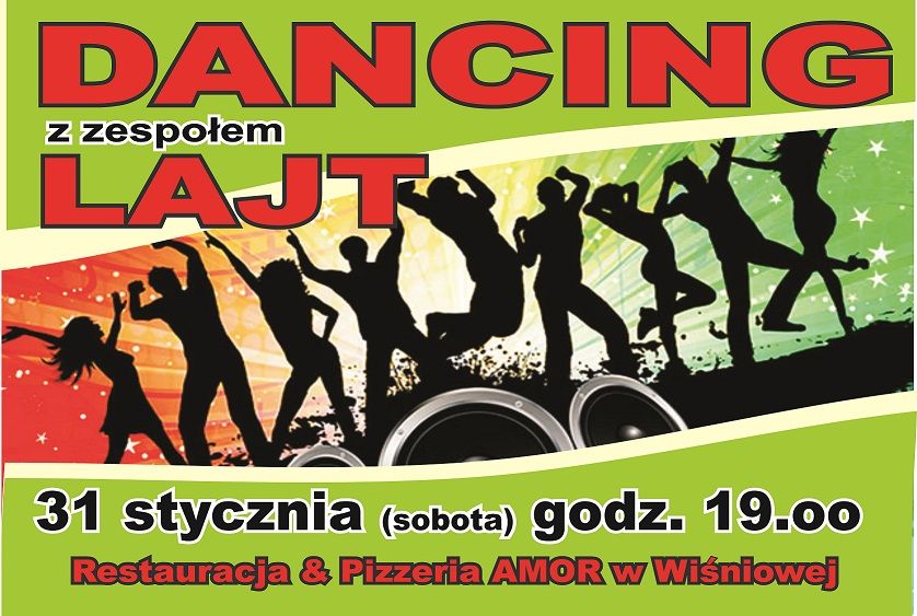 DANCING z zespołem LAJT 31 stycznia (sobota) g. 19.oo Restauracja & Pizzeria AMOR w Wiśniowej ZAPRASZAMY