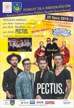 Zapraszamy wszystkich na Imprezę pn. „Powiat dla Mieszkańców – Koncert Jubileuszowy Polskiej Muzyki Rozrywkowej”, która odbędzie się 22 lipca 2018 r. w parku w Powiatowym Centrum Kultury i Turystyki w Wiśniowej