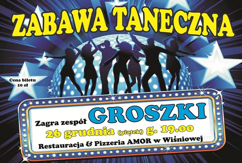 z zespołem GROSZKI 26 grudnia (piątek) start godz. 19.oo Restauracja&Pizzeria AMOR w Wiśniowej ZAPRASZAMY